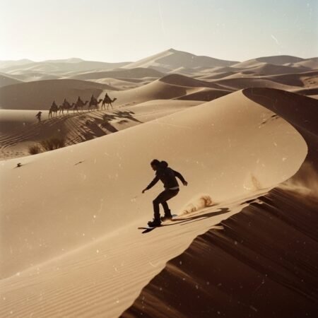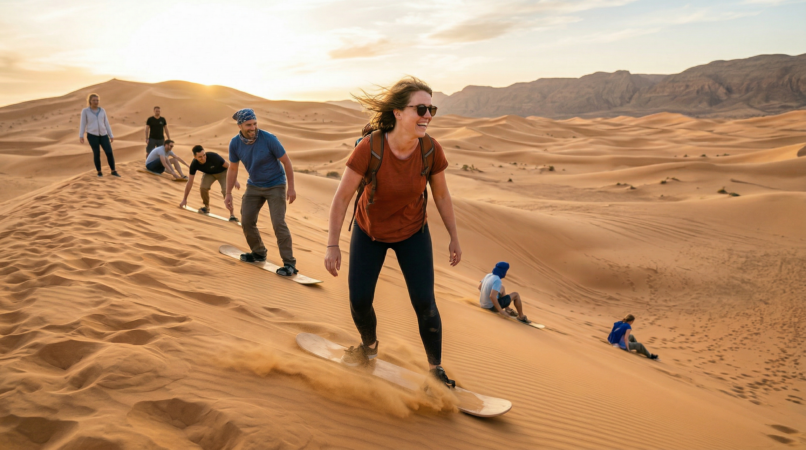 Nous proposons une escapade raffinée dans le désert, axée sur la magie du sandboard au coucher du soleil, suivie d'un authentique dîner barbecue marocain à la belle étoile. Cette expérience est conçue pour les voyageurs en quête d'adrénaline et de détente, loin du bruit et de l'intensité des activités motorisées.